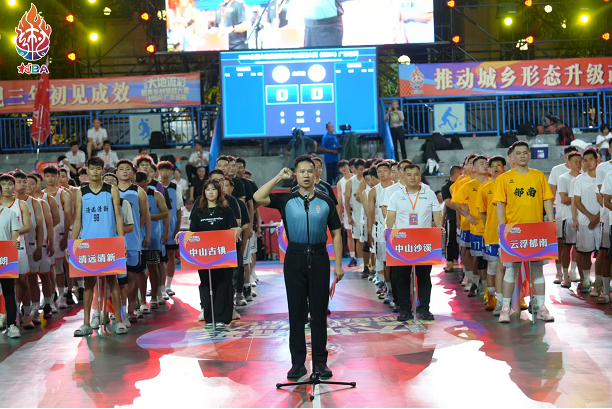 開幕式上,運動員代表李衍均、裁判員代表任炯峰分別上臺宣誓。開幕式后,中山沙溪隊與云浮郁南隊率先“開波”,正式拉開了又一年全民狂歡的“村BA”賽事序幕。